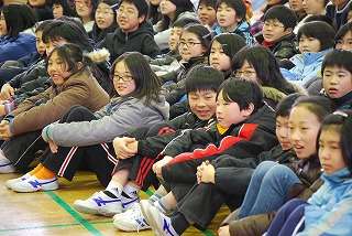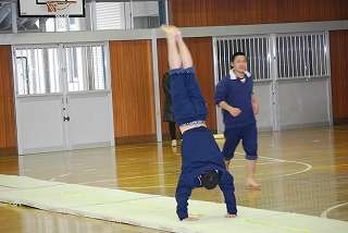 ※2月8日(月)北厨川小学校での様子です。体操部の発表の様子です。