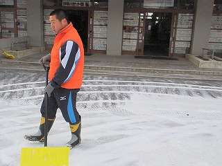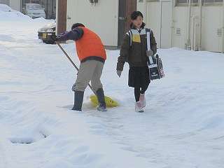 昨日の夕方から降り始めた雪が積もりました。粉雪ではなく、ザラメ状の雪でしたので「春が近いのかな?」と感じられる雪かきでした。今朝は朝のトレーニングが期末テストのためありませんでしたので、雪かきは用務員さんと先生でやりました。しかし校長先生の雪払いの始める時間の早いこと早いこと。