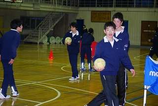 ※2月12日(金)時間延長をして体育館で部活動に取り組む男子ハンドボール部の様子です。