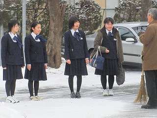 2月15日(月)の朝、吹奏楽部の4人が校長先生に秋田市で行われた「アンサンブルコンテスト東北大会」の報告をしていたところを撮影しました。東北大会出場の打楽器四重奏は岩手県唯一の金賞、クラリネット八重奏は銅賞でした。どちらも最高の演奏でした。校長先生は14日(日)秋田市に行き、演奏を聴きに行きました。校長先生も凄い!