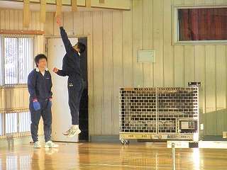 期末テストの始まる週ですが、朝のトレーニング参加者は元気に登校し、練習に参加しました。まだまだ体育館は寒いです。その中でも頑張ります。