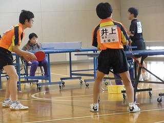 団体戦の結果は1回目なんと5−0で勝ちました。何とか1年生中心で試合をと思い、選手を替えて2回目の団体戦に臨みましたが、惜しくも2−3で負けました。アドバイスしてくれている高校生(北陵中OB)にも来てもらい、セット毎にアドバイスをもらいました。これからまだまだ寒くなりますが、卓球競技の大会はこれからたくさんあります。