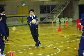 ※2月12日(金)時間延長をして体育館で部活動に取り組む男子ハンドボール部の様子です。