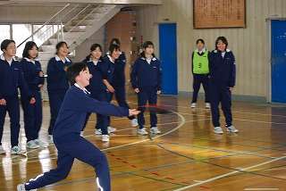 2月1日(月)の5,6校時、「1年生のクラスマッチ」が行われました。今回の1年生のクラスマッチは男女に分かれて、フリスビーを投げて相手に当てる「ドッジビー」を行い、楽しい時間を過ごしました。男女総合優勝は5組、2位は3,4,6組、3位は1組、4位は2組でした。応援賞は5組、敢闘賞は2組、団結賞は1組でした。男子からも女子からも歓声が聞こえました。先生方も、生徒と一緒になって動き回りました。フリスビー投げと、いいながら、投げるフリスビーの速さは結構速いんです。フリスビーの投げ方も、生徒から教わりました。小学校でやってきたみたいです。
