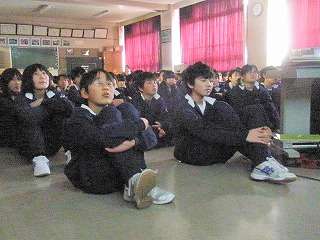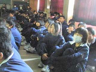 ※2月15日(月)携帯電話のビデオを見る2年生の様子です。校長先生は「中学生には携帯電話は必要ない。持たせないでほしい」といつも言われています。