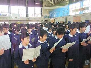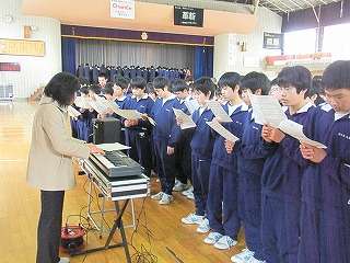卒業式に向けて、在校生合唱練習スタート☆「贈る言葉」と「大地賛頌」