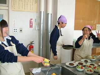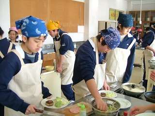 2月4日(木)の3,4校時、調理室から「いい匂い」がしてきました。その匂いに引き寄せられて、調理室へお邪魔しました。2年1組の皆さんが、ハンバーグと野菜サラダを作っていました。調理の様子を「パチリ」。さらに、試食中を担任の先生が「パチリ」と写真を撮りました。