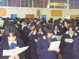 卒業式に向けて、在校生合唱練習スタート☆「贈る言葉」と「大地賛頌」(その8)