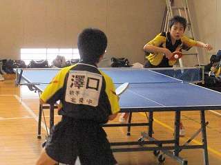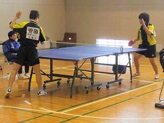 1月30日(日)土淵活動センターで厨川中学校と練習試合を行いました。厨川中学校は、市新人大会優勝、県新人大会ベスト8の学校です。前回12月末の練習試合では団体戦2回行い、1勝1敗でした。今回は今年初めての練習試合となりました。2回の団体戦を行って、2回とも勝てるようになるまで練習試合を頼むつもりです。今回の団体戦の結果は1回目、4−1で勝ちました。2回目は1年生中心で試合をし、3−2で勝ちました。2回続けて勝ったのは、初めてです。その後厨川中のコーチから技術指導を受けました。卓球競技の大会はこれからたくさんあります。