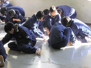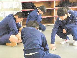 3月5日(金)、1年間お世話になった教室に感謝の気持ちを込めて、全校生徒で自分の教室の床磨きをしました。特に3年生は3年間お世話になった校舎です。学期末には「トイレピカピカ隊」として活動し、校舎内をきれいにしてきましたが今回の取り組みが最後の活動になります。このあと学級の管理局員でワックス塗りを行ってきれいにします。