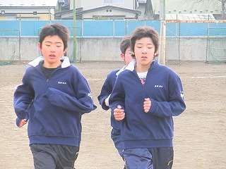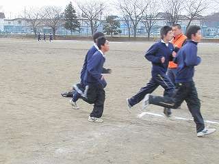 いよいよ4月の「市内一周継走大会」まで、1ヶ月です。校庭の雪が溶け、久しぶりに校庭で練習ができました。
