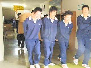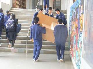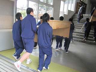 ※3月9日(火)、体育館にひな壇を運び入れる3年生です。