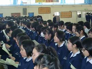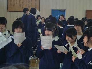 明日の卒業式では感謝の気持ちを込めて歌います☆在校生合唱練習頑張るぞ!「贈る言葉」と「大地賛頌」(その9)