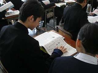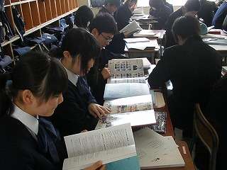 卒業式の予行前、3年生は1校時の学活の時間に「卒業アルバム」と「卒業文集」が渡されました。大歓声のあと、教室内が静まりかえり夢中に見たり呼んだりしていました。