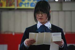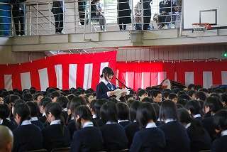 ※3月13日(土)の卒業式の様子です。生徒会長から「送辞」の様子です。