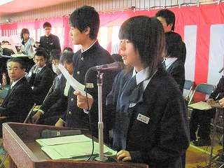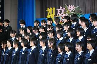 ※3月13日(土)の卒業式の様子です。いよいよ卒業式主役の3年生の合唱です。ナレーションに合わせていよいよ大きなひな壇へ移動です。