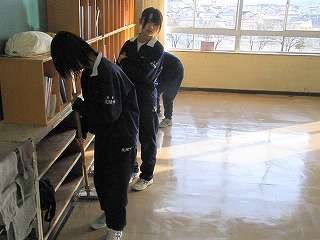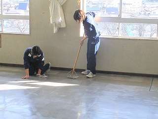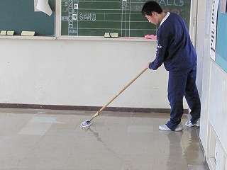 ※3月9日(火)、1,2年生は管理局員が自分の教室のワックス塗りをしました。