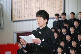 ※3月13日(土)の卒業式の様子です。いよいよ卒業式主役の3年生の合唱です。ナレーションに合わせていよいよ大きなひな壇へ移動です。生徒会長の「答辞」には、目頭が熱くなりました。校長先生が北陵中学校に赴任してきて教えられたこと、楽しかったこと、自分たちの活動で残してきたものなど、聞いている3年生の先生方は目頭が熱くなってしまいました。