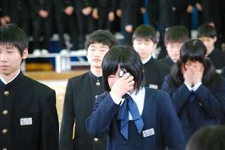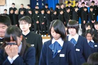※3月13日(土)の卒業式の様子です。3年5組が退場します。