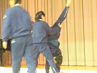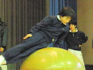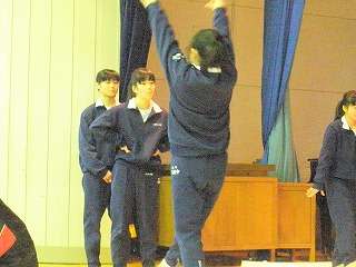 ※3月2日(火)、体操部の部活動の様子です。ステージの上での練習です。1年生だけで頑張っています。