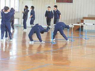 3月19日(金)春休み中ですが、いつも通り7:50から朝のトレーニングが始まりました。校庭がまだ使えない状況で、体育館での練習です。部活動に参加するために、たくさんの部員が参加し練習に汗を流しました。