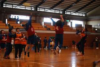 4月24日(土)から、運動系各部活動の市民体が開催されます。各部の練習は以前にも増して熱が入っています。そんな中、4月10日(土)の午前中に県営武道館では男・女ハンドボール部が厨川中学校チームとの練習試合を行いました。写真は2年生女子チームの試合の様子です。このゲームは、前半は3−4と接戦でしたが、後半は3−7となり惜しくもやぶれてしまいました。またの機会にがんばりましょう。