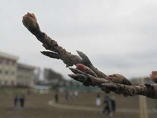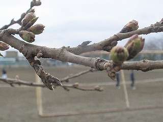 修学旅行で行く東京の桜は「桜吹雪」なようですが、盛岡の桜はつぼみが大きくなってきています。3年生は修学旅行で14日から東京へ出発しますが、学校へ戻ってくるのは19日(月)になります。戻ってくるまで、どうぞ咲きませんように?
