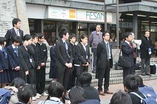 出発式では、お世話になる旅行業者さんの紹介、実行委員長さんからのあいさつがありました。そして、最後は見送りに来て頂いた保護者の皆さんへ「行ってきます」の大きな声であいさつをしました。
