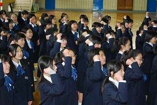 4月15日(木)、1年生の応援練習の様子です。3年生が修学旅行で留守の間、2年生のエール委員の皆さんが1年生の応援練習をとてもよくリードしています。1年生も応援パターンに慣れてきたようで、少しずつ声が出てきました。19日(日)の一周継走での応援をぜひがんばってください。