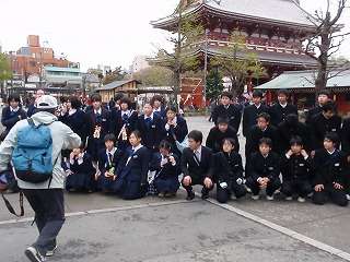 3年1組の修学旅行最終見学地は「浅草」でした。おみくじを買った生徒やお土産を買いあさる生徒で、いつしかいっぱいの荷物になりました。