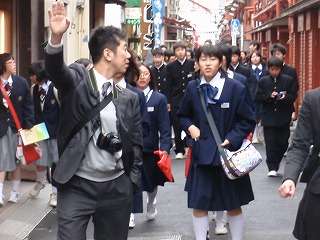 3年1組の修学旅行最終見学地は「浅草」でした。おみくじを買った生徒やお土産を買いあさる生徒で、いつしかいっぱいの荷物になりました。