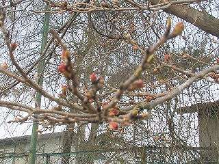 4月19日(月)修学旅行から帰ってきて、学校の清陵館前のさくらの木を見ました。芽が赤くなってふくらんでいますが、まだまだ咲く様子はありません。修学旅行中に咲いてしまい、東京でも見ることができず岩手でも見ることができないかと思っていましたので、一安心です。修学旅行中の東京は寒かったのですが、岩手も寒かったんですね。桜の花が咲くのを楽しみにしています。