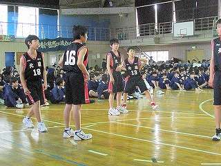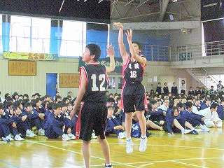 ※4月8日(木)部活動説明会の様子です。男子バスケットボール部の発表の様子です。