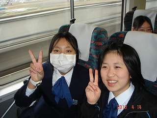 4月14日(水)7時30分発の「はやて・こまち号」で東京へ向かうはずでしたが、強風のため秋田からの「こまち号」が30分遅れてしまいました。盛岡駅で連結することなく、「はやて」号単独で東京へ出発しました。2組の車内での楽しい風景です。