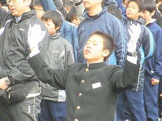 また、エール委員の生徒も頑張りました。3年生のエール委員長の松平くん、副委員長の吉田くんと前川くんは常に前で1年生の応援をリードしました。また、3年生のエール委員も全員参加し、のぼりを持ったり、太鼓をたたいたりと自分の仕事をやってくれました。修学旅行後にもかかわらず、応援に取り組んでくれました。1年生の応援の声の大きさにビックリしました。元気のいい声が遠くの選手まで届いたことと思います。