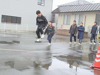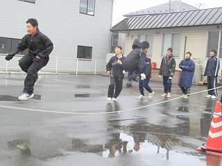 ※3月21日(日)土淵活動センターで厨川中と練習試合前、縄跳びで準備体操を行いました。