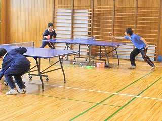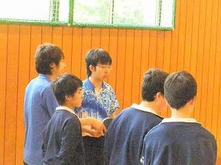 また、顧問が前任校である厨川中学校時代卓球部の生徒(今は立派な社会人ですが)が尋ねてきて久しぶりに卓球の練習をしました。生徒の練習相手をしてもらいました。彼は「市中新人大会個人戦の優勝者」です。また、いつも「みたけ活動センター」で卓球練習をしている社会人の方にも参加していただき、いつのより賑やかな練習となりました。