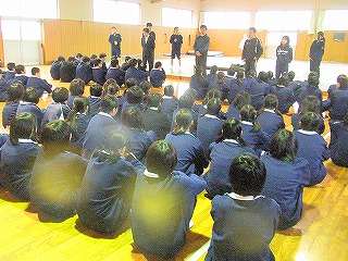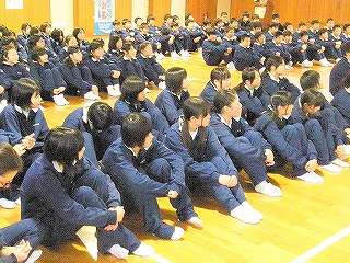 4月30日(金)の4校時、体育祭の組団集会が行われました。初めてと言うこともあり、準備が十分ではありませんでしたが「3年生の出番」の行事です。女子は大喜びで応援活動に取り組んでいましたが、男子は「恥ずかしい?」のか、まだまだ火が付きません。これから徐々に盛り上がっていくことを期待しています。頑張れ!