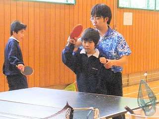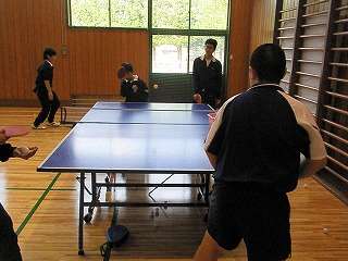 4月26日(月)から1年生の仮入部が始まりました。連休中ですが、卓球部は休みなしで練習に取り組んでいます。普段の時間では足りません。連休中に1年生の指導を顧問や先輩方が取り組んでいます。休み中ですが、1年生は楽しそうに部活動に参加していました。この連休後に正式入部になります。男子卓球部には、4人の生徒が仮入部し「マシンと素振りでフォアハンド打ち」を練習しました。男子卓球部には5連休はありません。毎日部活動があります。ついてこれるかな?市民体の応援をし、今のところ付いてきています。頑張れ!1年生。