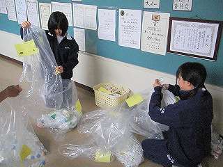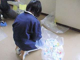※5月7日(金)の昼、「ペットボトルのキャップを集め」に取り組むSKET委員会です。