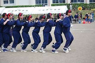 ※15日(土)体育祭「3年生の「ムカデリレー」」の様子です。黄組が圧倒的に差をつけてゴールしました。黄組の呼吸の良さが光り、予想通りの「結果」となりました。