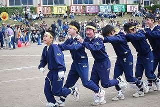 3年生学年種目☆「ムカデリレー」!見事です。優勝は、黄組団(7組団)(その2)