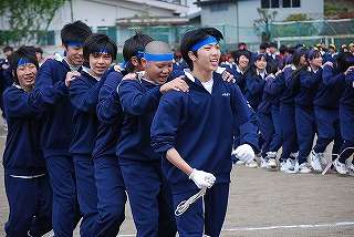 ※15日(土)体育祭「3年生の「ムカデリレー」」の様子です。黄組が圧倒的に差をつけてゴールしました。黄組の呼吸の良さが光り、予想通りの「結果」となりました。