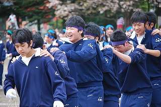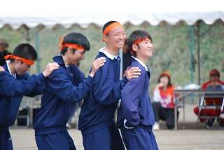 ※15日(土)体育祭「3年生の「ムカデリレー」」の様子です。黄組が圧倒的に差をつけてゴールしました。黄組の呼吸の良さが光り、予想通りの「結果」となりました。