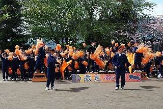 橙組団(3組団)の団長は、八重桜 郁弥君。八重桜君のかけ声の下、橙組団(3組団)はまとまって応援に取り組みました。