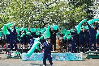 緑組団(5組団)の団長は、森 隆之君。森君のかけ声の下、緑組団(5組団)はまとまって応援に取り組みました。