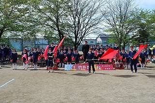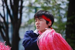 赤組団(6組団)の団長は、吉田 健介君。吉田君のかけ声の下、赤組団(6組団)はまとまって応援に取り組みました。