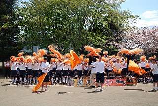 橙組団(3組団)の団長は、八重桜 郁弥君。八重桜君のかけ声の下、橙組団(3組団)はまとまって応援に取り組みました。