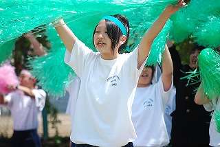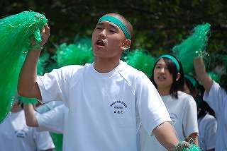 緑組団(5組団)の団長は、森 隆之君。森君のかけ声の下、緑組団(5組団)はまとまって応援に取り組みました。