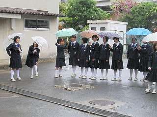 先週の金曜日の「3年生のショート集会」で、学年生徒会が「挨拶運動を行いますので、たくさんのボランティアを募ります」と呼びかけをしました。今朝は雨が降っていましたが、たくさんの3年生が生徒昇降口前で挨拶運動に取り組んでくれました。